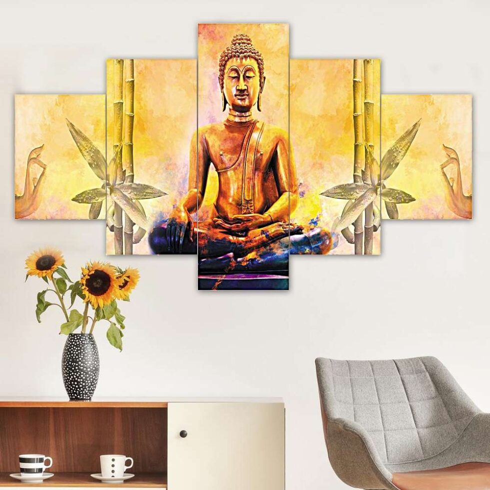 Buddha Set of Five 3D Framed Paintings for Wall Decoration – Ideal for Home, Living Room, and Bedroom (75 x 43 CM)